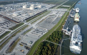 ¹Ì±¹ ·çÀÌÁö¿¡³ªÁÖ¿¡ À§Ä¡ÇÑ º¥Ã³ ±Û·Î¹ú»çÀÇ LNGÅ͹̳ο¡ LNG¿î¹Ý¼±µéÀÌ Á¤¹ÚÇØ ÀÖ´Ù