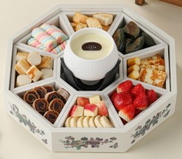 ‘ÀüÁÖ ÇÑ»ó Æþµà’´Â ÀÌ °èÀý¿¡ °¡Àå ¸ÀÀÖ´Â ÀüºÏ Áö¿ª Ư»ê¹°À» µû¶æÇÏ°Ô ³ìÀÎ ´ÞÄÞÇÑ ÈÀÌÆ®ÃÊÄݸ´°ú ÇÔ²² ±¸ÀýÆÇ¿¡ ´ã¾Æ³»´Â ÀÌ»ö µðÀúÆ®´Ù. ¡âÀüºÏ Áö¿ª ½Ò¶± 2Á¾ ¡â¿ÏÁÖ °ù°¨ ¡â¿ÏÁÖ µþ±â ¡âÀÓ½Ç Ä¡Áî ¡â¹«ÁÖ »ç°ú µî Áö¿ª Ư»ê¹° 6Á¾°ú ¹Ù°ÔÆ®, ¸¶½Ã¸á·Î¿ì¸¦ ±¸ÀýÆÇ¿¡ dz¼ºÇÏ°Ô ´ã°í, Áß¾Ó¿¡´Â ¹¶±ÙÇÏ°Ô ³ìÀÎ ÈÀÌÆ®ÃÊÄݸ´À» ¿Ã·Á Á¤°¥Çϰí Á¶È·Î¿î Çѱ¹½Ä ´ãÀ½»õ¸¦ »ì·È´Ù. ÀüºÏ Áö¿ª Á¦Ã¶ Ư»ê¹°À» ¼¾ç½Ä Æþµà·Î »ö´Ù¸£°Ô Áñ±æ ¼ö ÀÖ´Â ±âȸ´Ù. ´Ù¸¸ ¿ÏÁÖ µþ±â¿Í ÀÍ»ê Å丶Åä´Â Àç·á ¼ö±Þ¿¡ µû¶ó Á¦°ø ÀÏÁ¤ÀÌ ´Þ¶óÁú ¼ö ÀÖ´Ù.