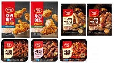 ¸ÕÀú ‘Çϸ²Ä¡Å²’ ½Ã¸®Áî´Â ġŲÁýÀÌ ¹®À» ´ÝÀº ½É¾ß ½Ã°£¿¡µµ ¿¡¾îÇÁ¶óÀ̾ ÀÖÀ¸¸é ¿Ïº®ÇÑ ‘Ä¡¸ÆÅ¸ÀÓ’À» ¸¸µé¾îÁÙ Á¦Ç°ÀÌ´Ù. ¹Ù»èÇÑ Ä¡Å²¿¡ Çâ±ßÇϸ鼭 °¡º­¿î ¹Ùµð°¨ÀÌ ¸Å·ÂÀûÀÎ ¿¡ÀÏ ¸ÆÁÖ¸¦ °çµéÀÌ¸é ¹ã»ù ÀÀ¿øÀÇ ÇǷεµ ³¯·Á º¸³¾ ¼ö ÀÖ´Ù. ƯÈ÷ Çϸ²Ä¡Å² ‘ÈĶóÀ̵å(¡âÁ¶°¢Ä¡Å² ¡â¼ø»ìġŲ)’ Á¦Ç°Àº ½ÃÁß¿¡ ÆÇ¸Å ÁßÀÎ ³Ãµ¿ ġŲ ´ëºñ Æ¢±è ½Ã°£À» µÎ ¹è ÀÌ»ó ´Ã¸° ‘µö ÈĶóÀ×(Deep-frying)’ °ø¹ýÀ» Àû¿ëÇØ ÇÁ·£Â÷ÀÌÁî ġŲ ƯÀ¯ÀÇ ‘°Ñ¹Ù¼ÓÃË’ ½Ä°¨À» Á¦´ë·Î ±¸ÇöÇß´Ù. ‘¼Ò½ºÄ¡Å²(¡â¼ÒÀ̰¥¸¯ ¡â´ÞÄÞ¾ç³ä ¡âÅ©¸²¹öÅÍ)’Àº ºÎµå·¯¿î ´ß°¡½¿»ì¿¡ »ý »§°¡·ç¸¦ ÀÔÇô µÎ ¹ø Æ¢°Ü³½ µÚ, ¾ç³äÀ» ¾ã°í °í¸£°Ô ¹ß¶ó ´ª´ªÇÏÁö ¾Ê°í ¹Ù»èÇÏ´Ù.